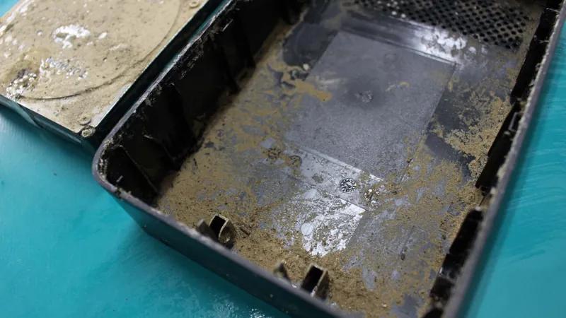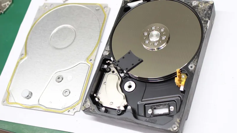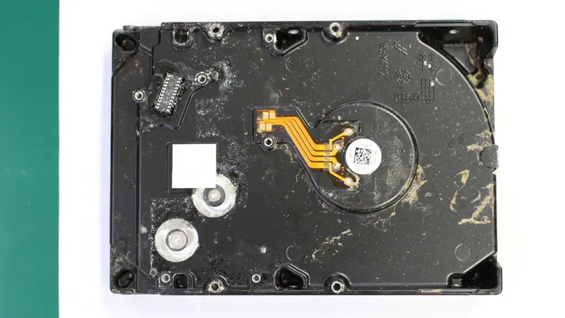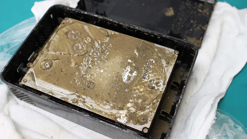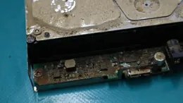 写真からわかるようにHDDの内部にまで浸水、泥の混入、乾燥した状態でした。